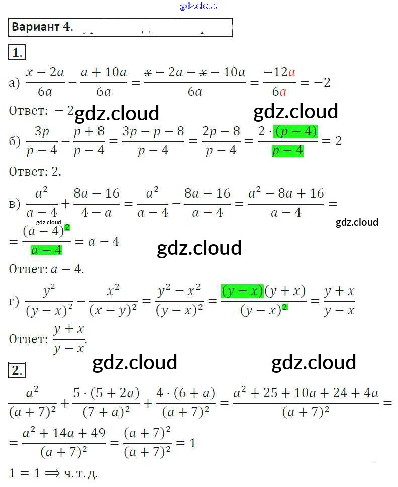Ответ на задание 4 Самостоятельные работы Алгебра за 8 (восьмой) класс Александрова 2016