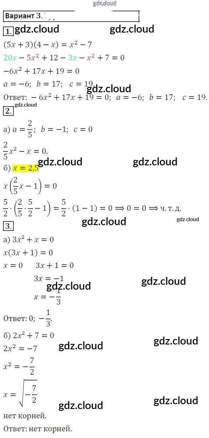 Ответ на задание 3 Самостоятельные работы Алгебра за 8 (восьмой) класс Александрова 2016