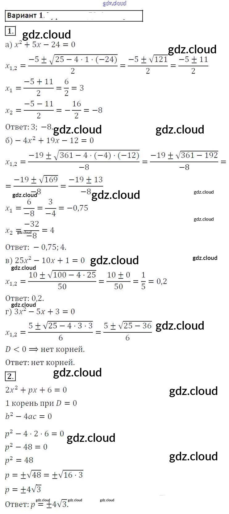 Ответ на задание 1 Самостоятельные работы Алгебра за 8 (восьмой) класс Александрова 2016