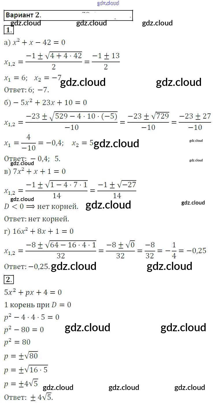 Ответ на задание 2 Самостоятельные работы Алгебра за 8 (восьмой) класс Александрова 2016