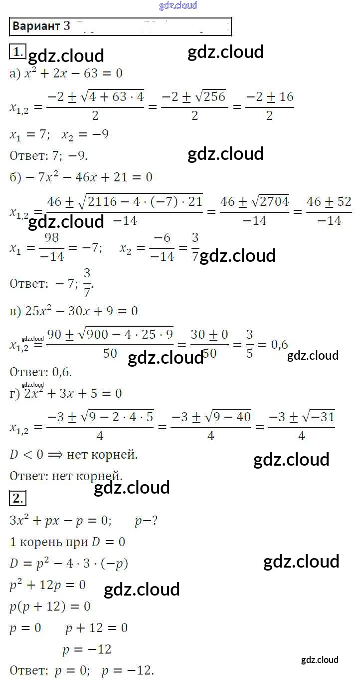 Ответ на задание 3 Самостоятельные работы Алгебра за 8 (восьмой) класс Александрова 2016