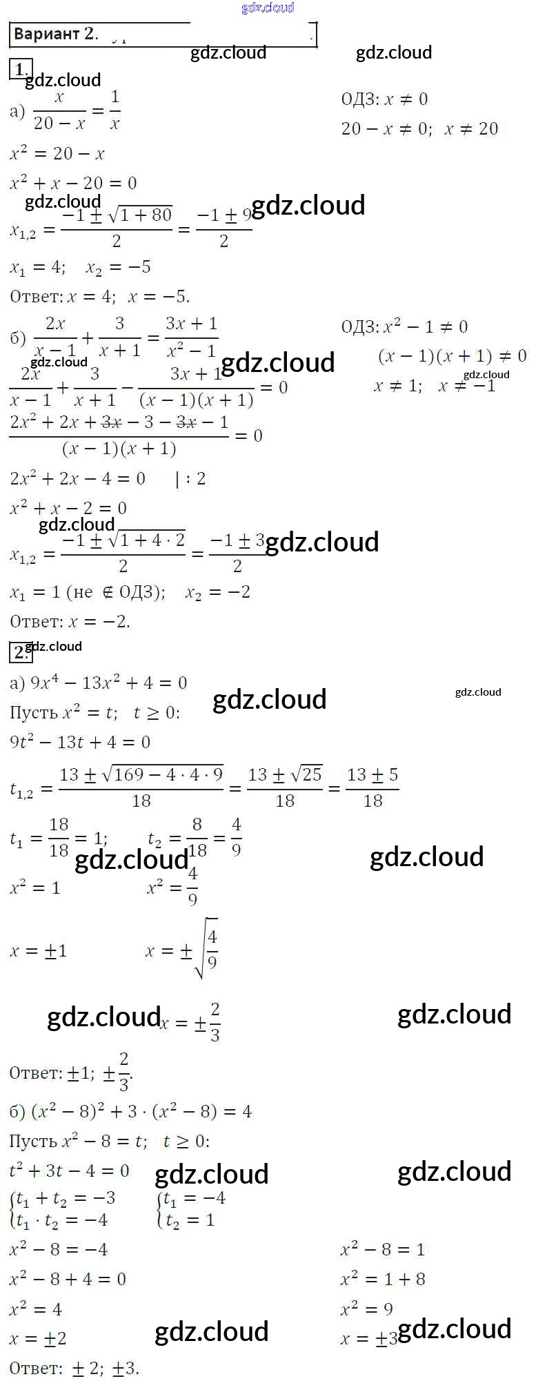 Ответ на задание 2 Самостоятельные работы Алгебра за 8 (восьмой) класс Александрова 2016