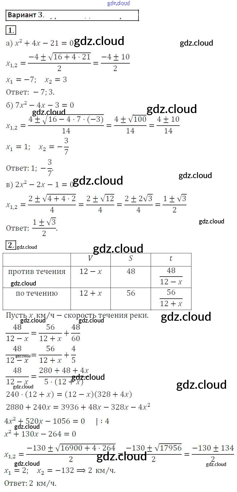 Ответы к СР-37. Варианты по Алгебре 8 класс Самостоятельные работы Александрова Мнемозина