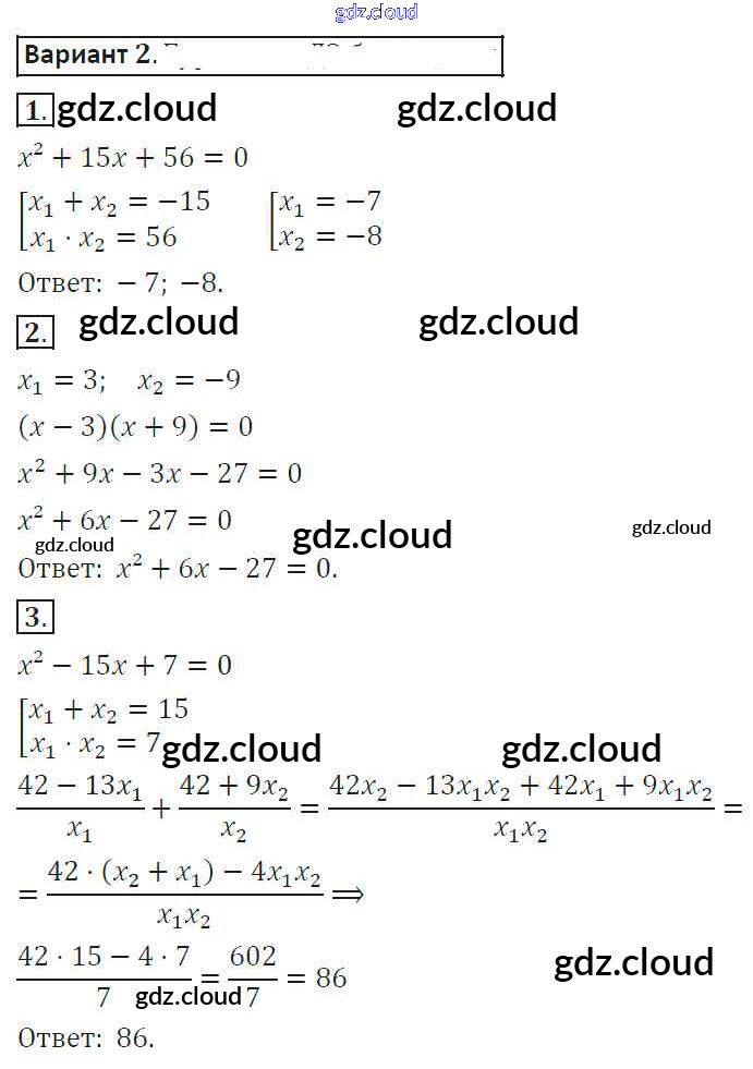Ответы к СР-38. Варианты по Алгебре 8 класс Самостоятельные работы Александрова Мнемозина