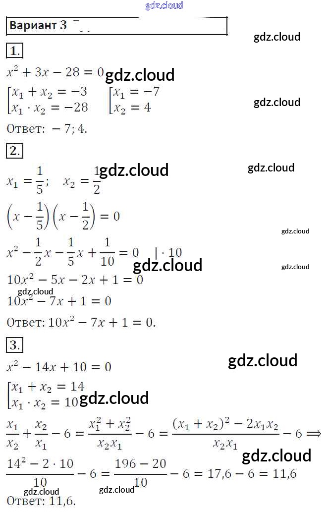 Ответ на задание 3 Самостоятельные работы Алгебра за 8 (восьмой) класс Александрова 2016