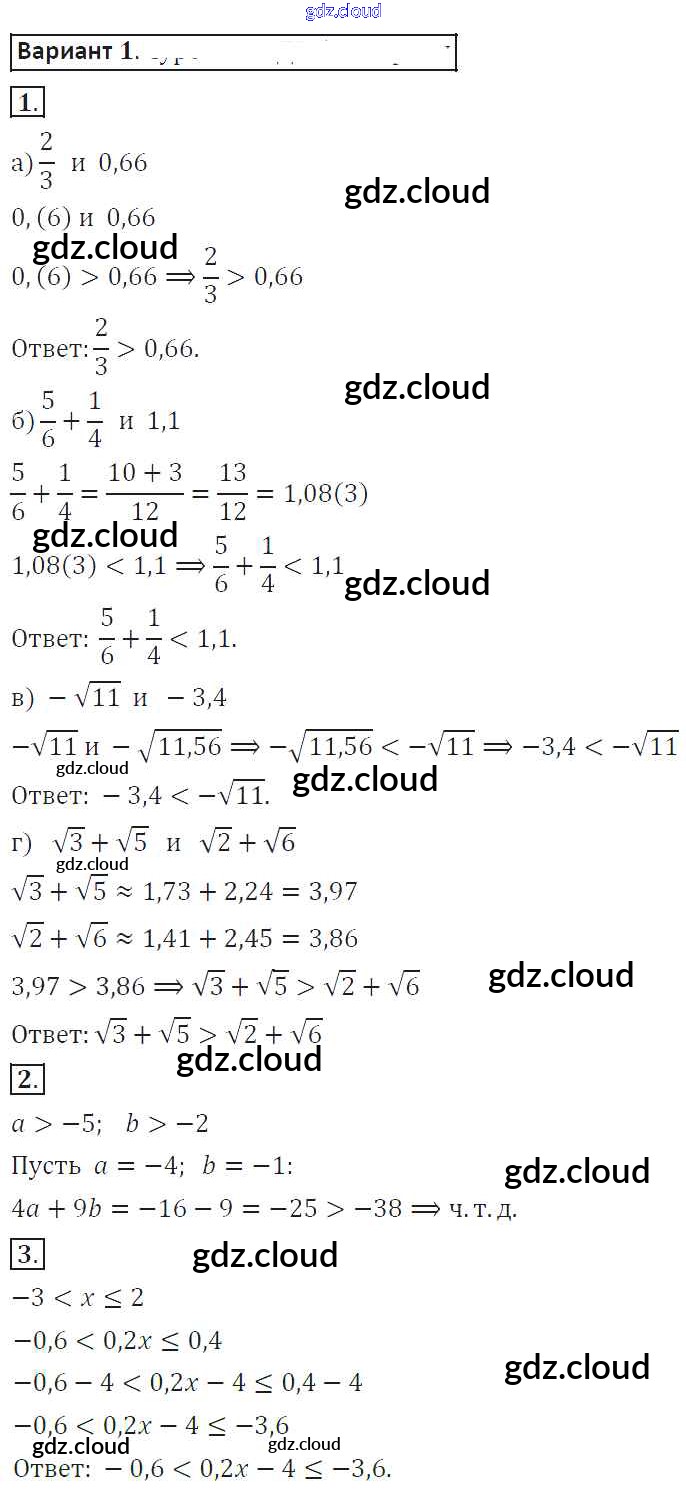 Ответ на задание 1 Самостоятельные работы Алгебра за 8 (восьмой) класс Александрова 2016