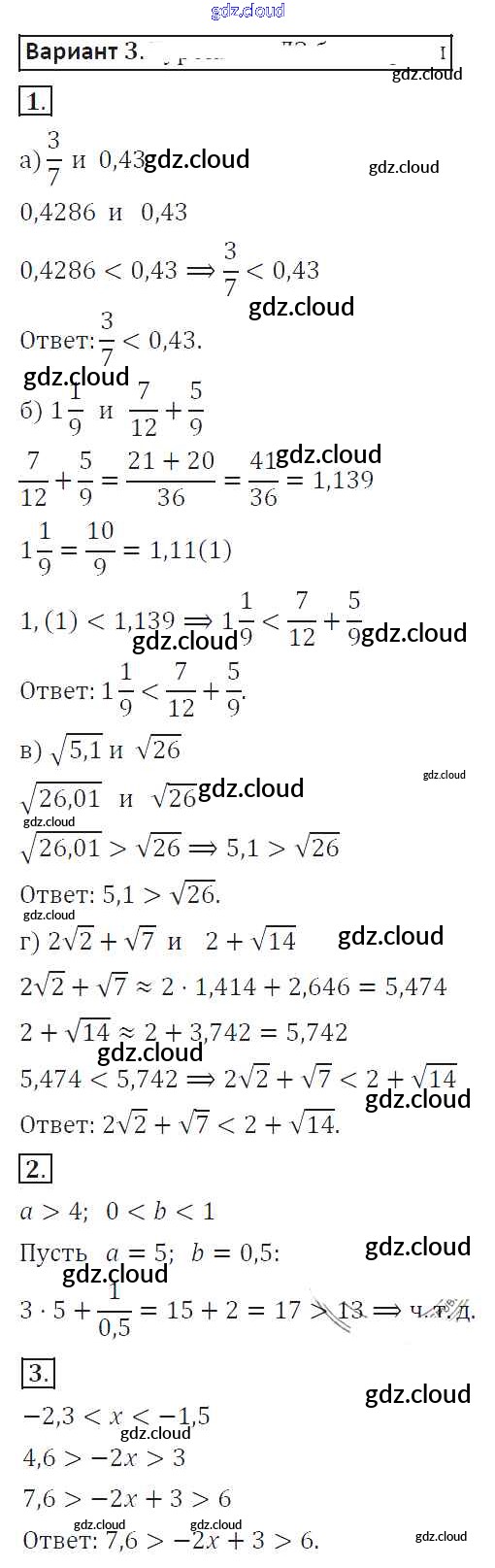 Ответ на задание 3 Самостоятельные работы Алгебра за 8 (восьмой) класс Александрова 2016