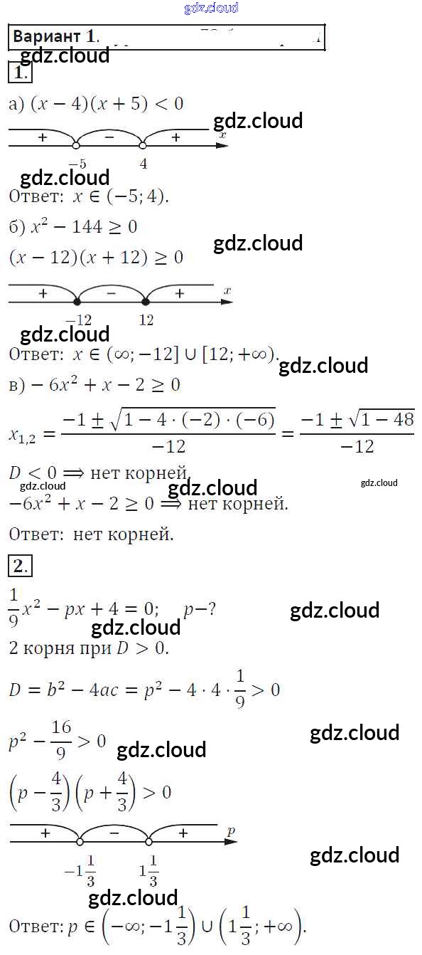 Ответ на задание 1 Самостоятельные работы Алгебра за 8 (восьмой) класс Александрова 2016
