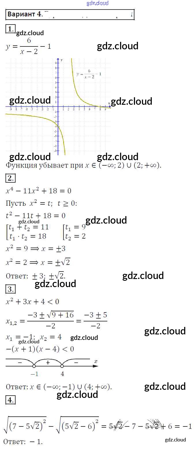 Ответ на задание 4 Самостоятельные работы Алгебра за 8 (восьмой) класс Александрова 2016 ФГОС онлайн и без номера телефона.