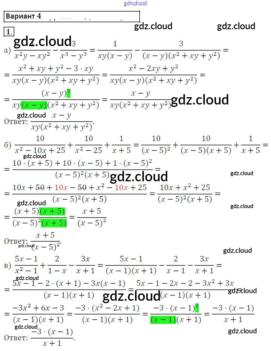 Ответ на задание 4 Самостоятельные работы Алгебра за 8 (восьмой) класс Александрова 2016