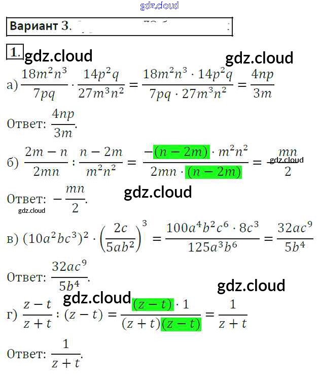 Ответ на задание 3 Самостоятельные работы Алгебра за 8 (восьмой) класс Александрова 2016