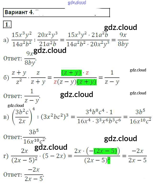 Ответ на задание 4 Самостоятельные работы Алгебра за 8 (восьмой) класс Александрова 2016