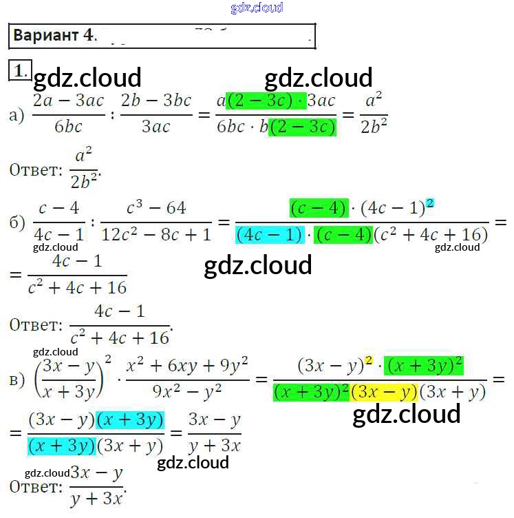Ответ на задание 4 Самостоятельные работы Алгебра за 8 (восьмой) класс Александрова 2016