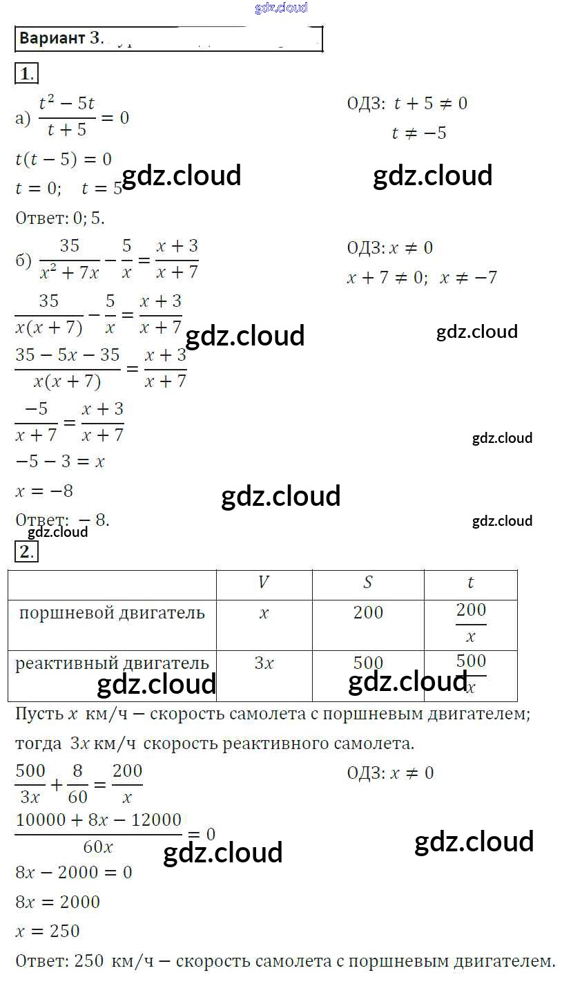 Ответ на задание 3 Самостоятельные работы Алгебра за 8 (восьмой) класс Александрова 2016