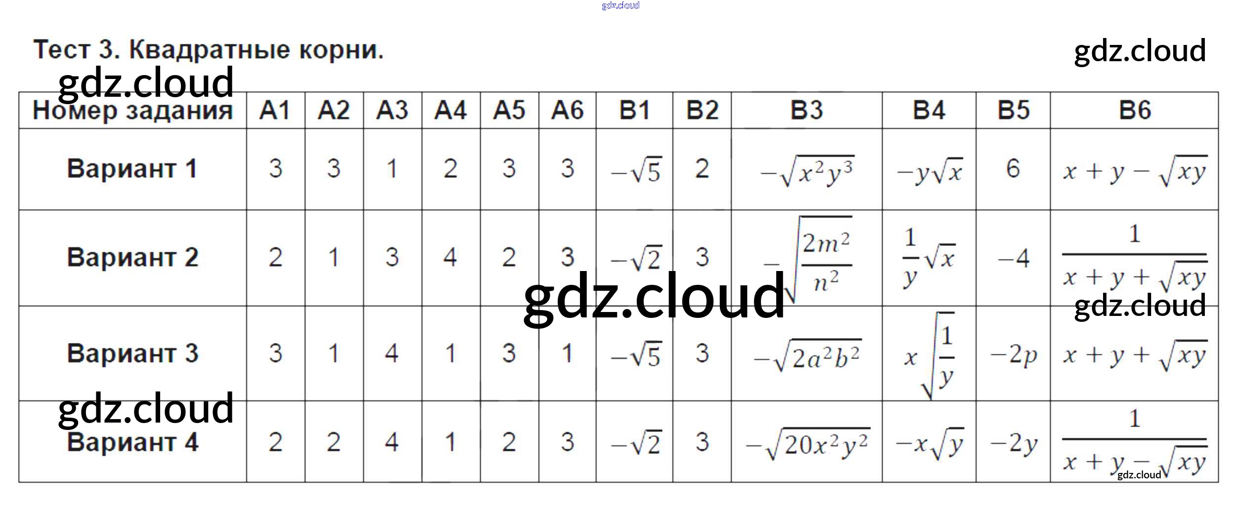 Ответ на задание 3 Тематические тесты Алгебра за 8 (восьмой) класс Чулков, Струков МГУ - школе 2012 ФГОС онлайн и без номера телефона.