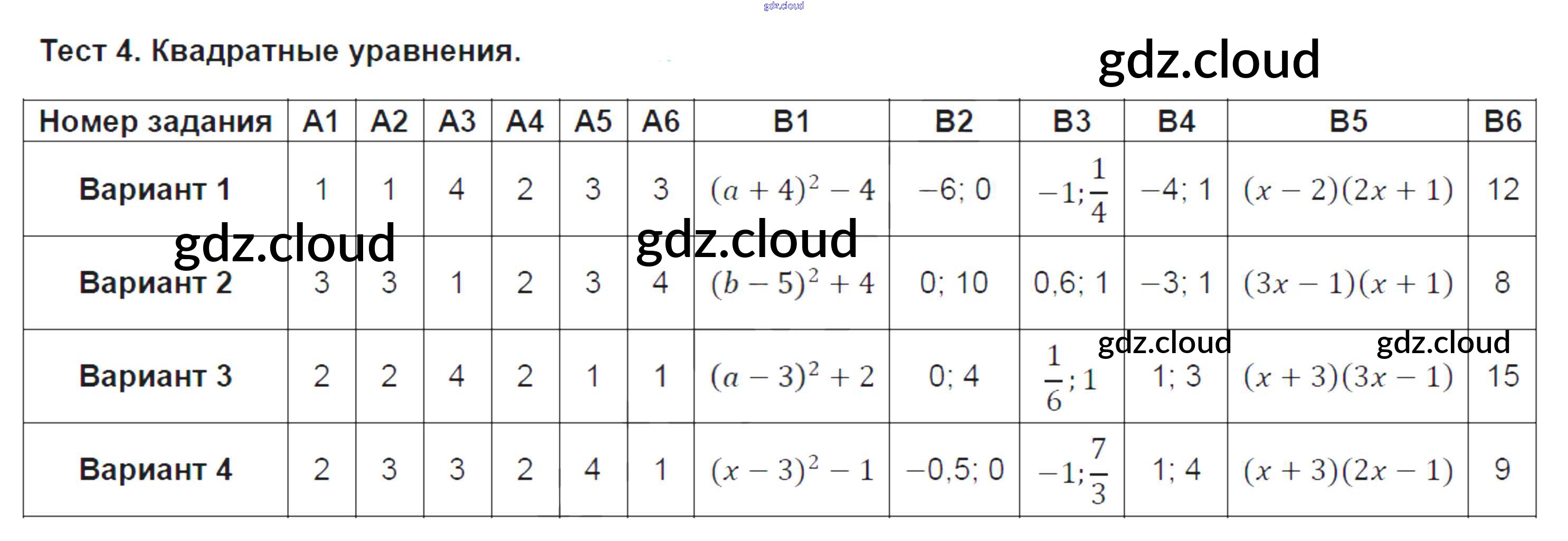 Ответ на задание 4 Тематические тесты Алгебра за 8 (восьмой) класс Чулков, Струков МГУ - школе 2012 ФГОС онлайн и без номера телефона.