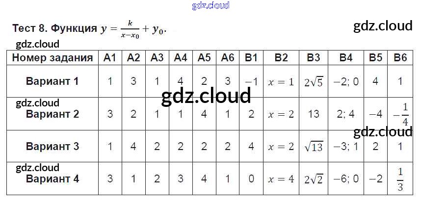 Ответ на задание 8 Тематические тесты Алгебра за 8 (восьмой) класс Чулков, Струков МГУ - школе 2012 ФГОС онлайн и без номера телефона.