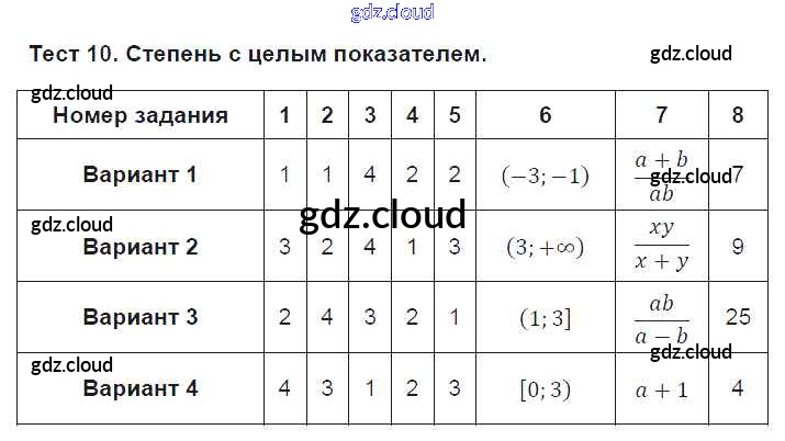 Ответ на задание 10 Тематические тесты Алгебра за 8 (восьмой) класс Дудницын, Кронгауз 2017 ФГОС онлайн и без номера телефона.