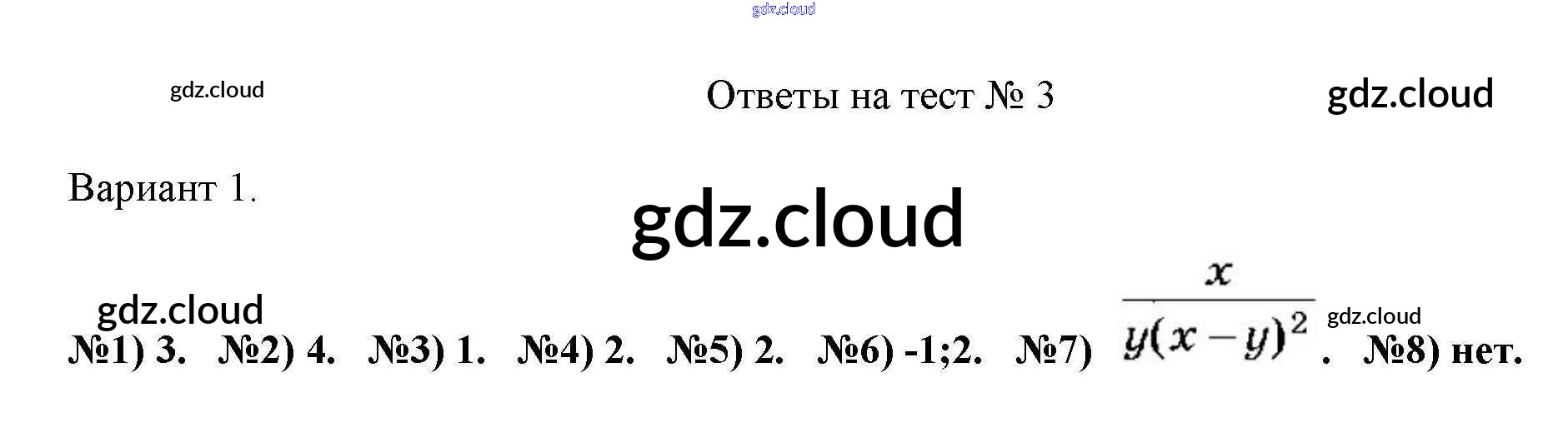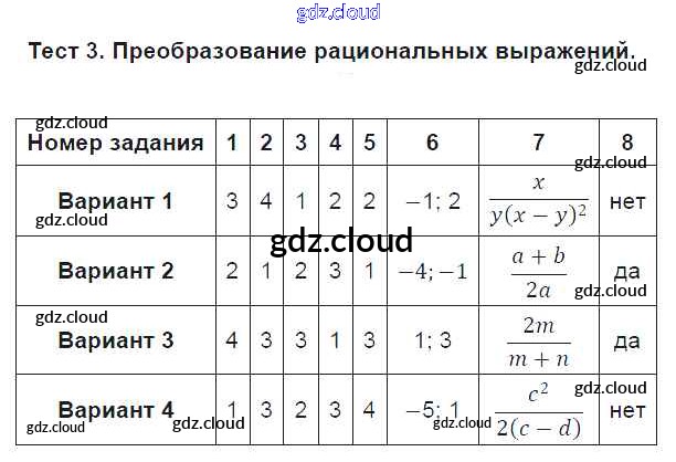 Ответ на задание 3 Тематические тесты Алгебра за 8 (восьмой) класс Дудницын, Кронгауз 2017 ФГОС онлайн и без номера телефона.