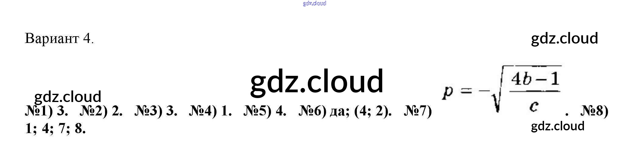 Ответ на задание 4 Тематические тесты Алгебра за 8 (восьмой) класс Дудницын, Кронгауз 2017 ФГОС онлайн и без номера телефона.