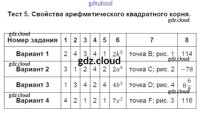 Ответ на задание 5 Тематические тесты Алгебра за 8 (восьмой) класс Дудницын, Кронгауз 2017 ФГОС онлайн и без номера телефона.
