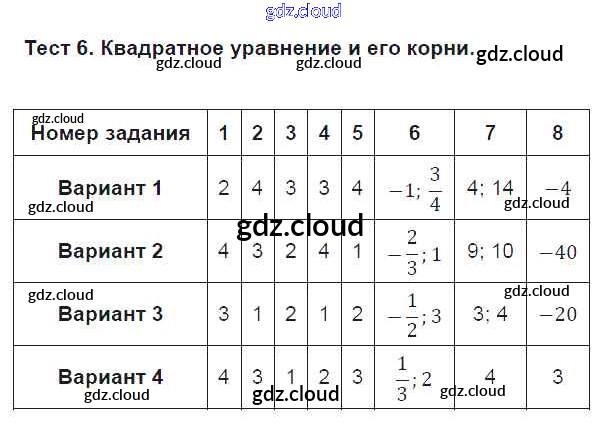 Ответ на задание 6 Тематические тесты Алгебра за 8 (восьмой) класс Дудницын, Кронгауз 2017 ФГОС онлайн и без номера телефона.