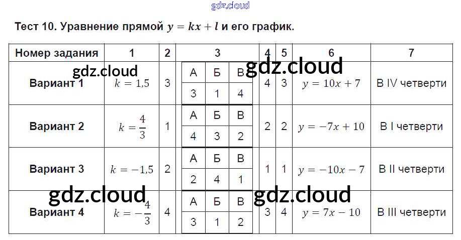 Ответы к Тестам по Алгебре 8 класс Тематические тесты Кузнецова Базовый уровень Просвещение