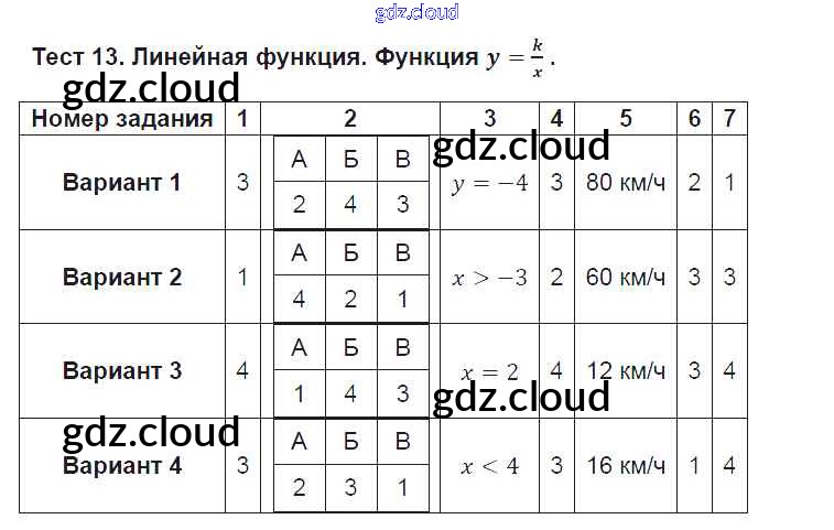 Ответы к Тестам по Алгебре 8 класс Тематические тесты Кузнецова Базовый уровень Просвещение