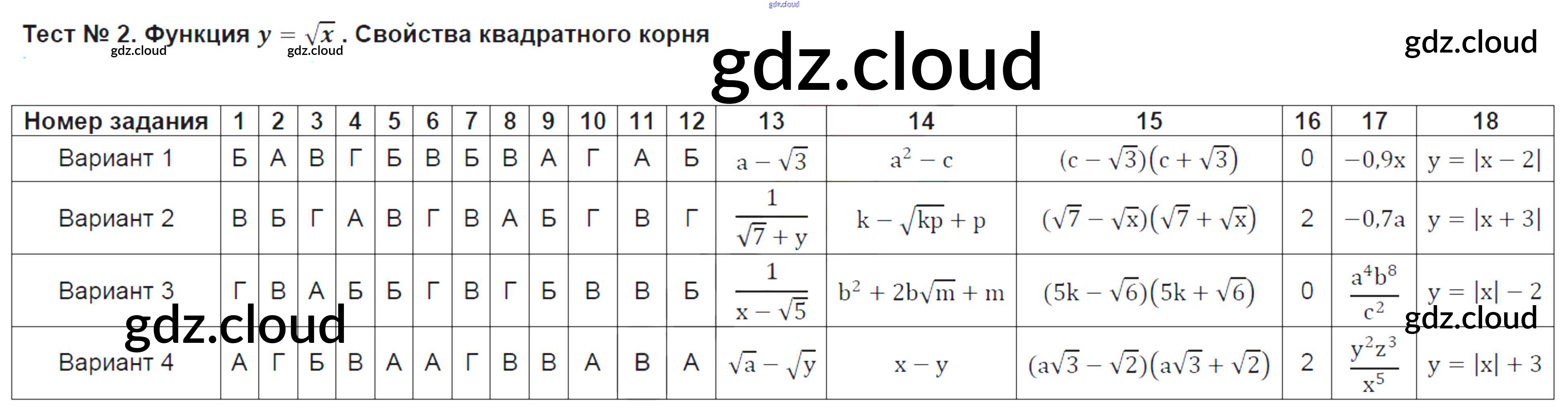 Ответ на задание 2 Тесты Алгебра за 8 (восьмой) класс Ключникова, Комиссарова УМК 2011 ФГОС онлайн и без номера телефона.