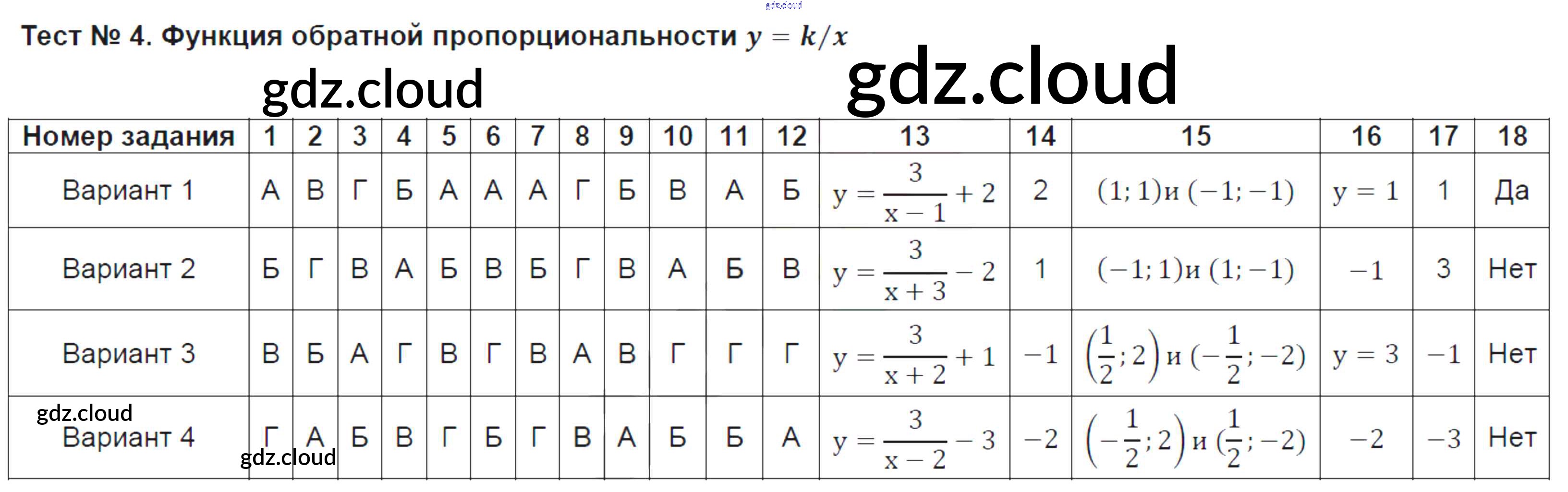 Ответ на задание 4 Тесты Алгебра за 8 (восьмой) класс Ключникова, Комиссарова УМК 2011 ФГОС онлайн и без номера телефона.