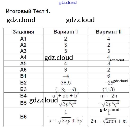 Ответ на задание 1 Тесты Алгебра за 8 (восьмой) класс Журавлев, Ермаков, Перепелкина, Свентковский УМК 2013 ФГОС онлайн и без номера телефона.