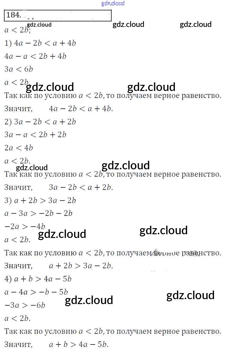 Ответ на задание 184 Учебник Алгебра за 8 (восьмой) класс Колягин, Ткачева, Федорова, Шабунин УМК 2013 ФГОС онлайн и без номера телефона.