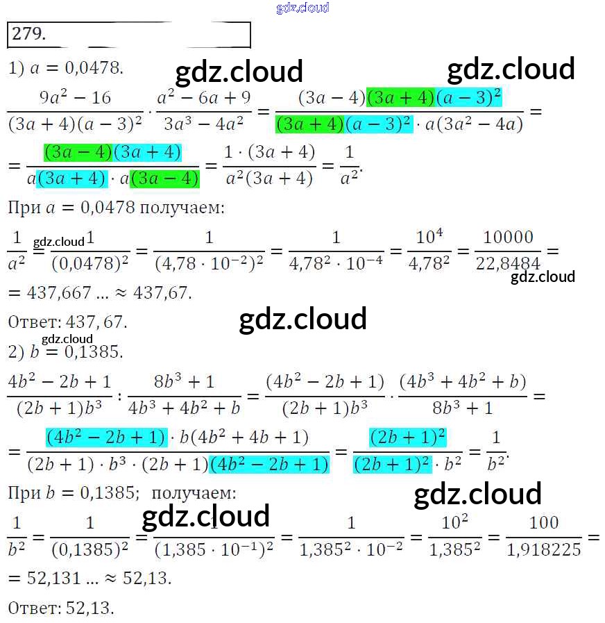 Ответ на задание 279 Учебник Алгебра за 8 (восьмой) класс Колягин, Ткачева, Федорова, Шабунин УМК 2013 ФГОС онлайн и без номера телефона.