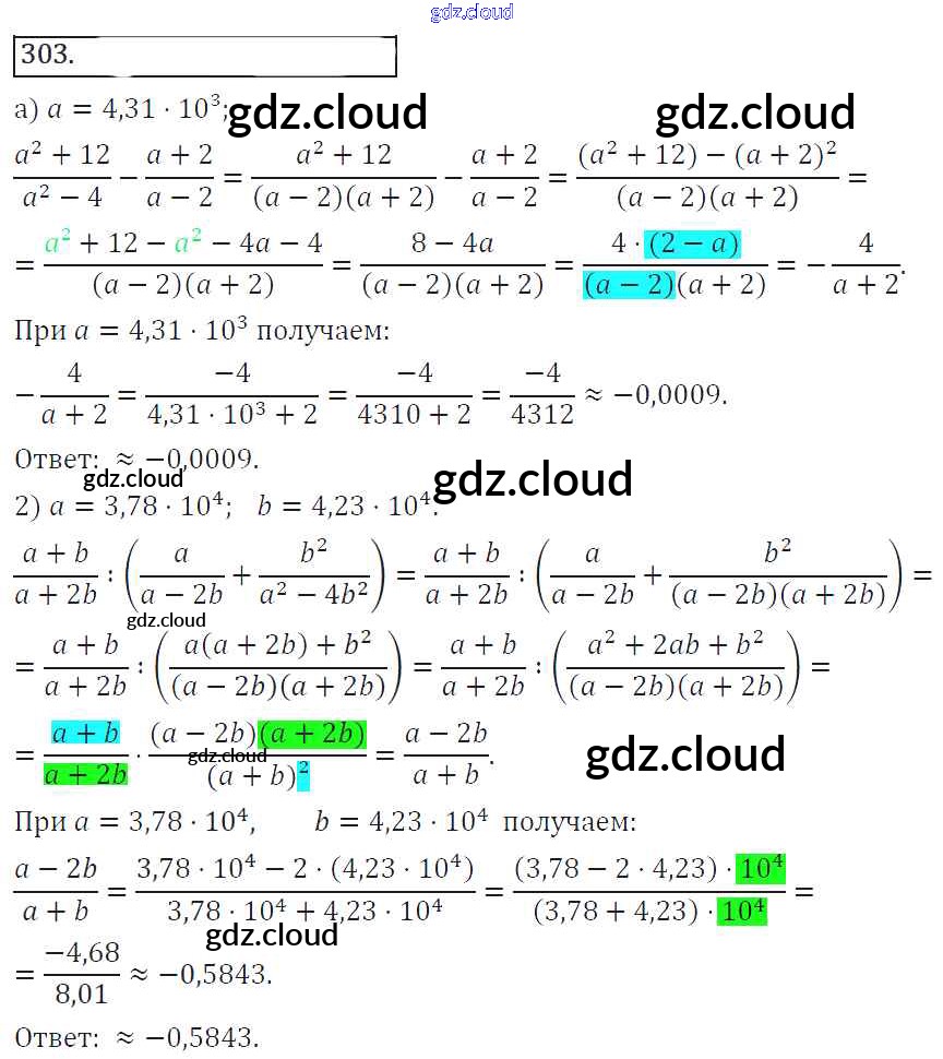 Ответ на задание 303 Учебник Алгебра за 8 (восьмой) класс Колягин, Ткачева, Федорова, Шабунин УМК 2013 ФГОС онлайн и без номера телефона.