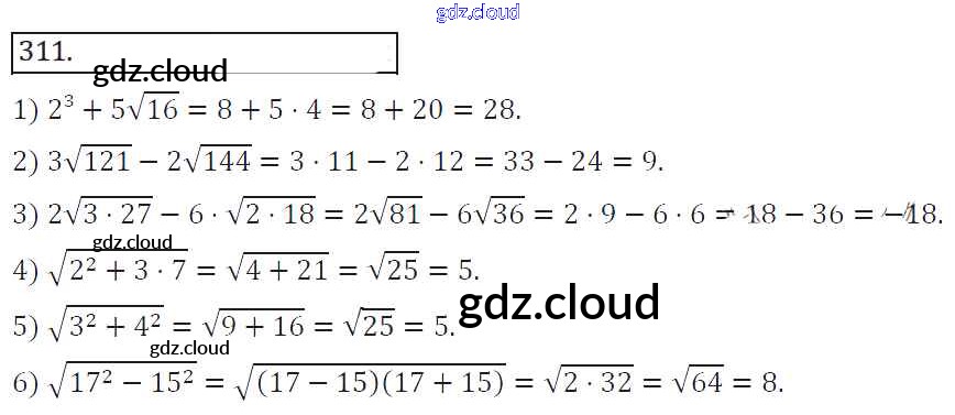 Ответ на задание 311 Учебник Алгебра за 8 (восьмой) класс Колягин, Ткачева, Федорова, Шабунин УМК 2013 ФГОС онлайн и без номера телефона.