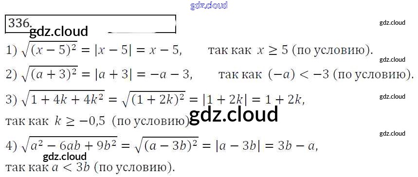Ответ на задание 336 Учебник Алгебра за 8 (восьмой) класс Колягин, Ткачева, Федорова, Шабунин УМК 2013 ФГОС онлайн и без номера телефона.