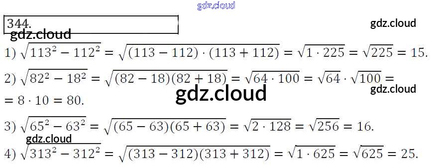 Ответ на задание 344 Учебник Алгебра за 8 (восьмой) класс Колягин, Ткачева, Федорова, Шабунин УМК 2013 ФГОС онлайн и без номера телефона.
