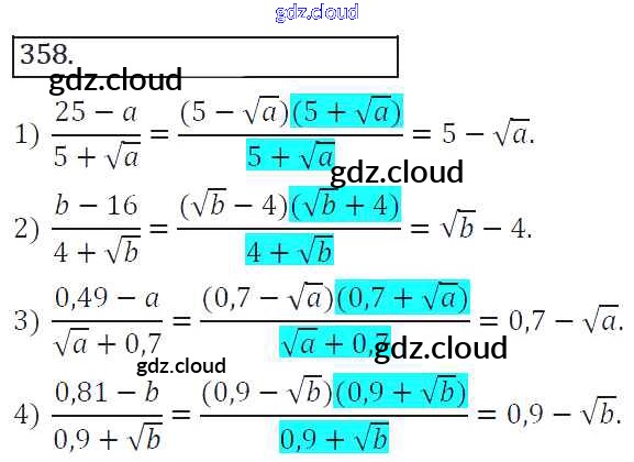 Ответ на задание 358 Учебник Алгебра за 8 (восьмой) класс Колягин, Ткачева, Федорова, Шабунин УМК 2013 ФГОС онлайн и без номера телефона.