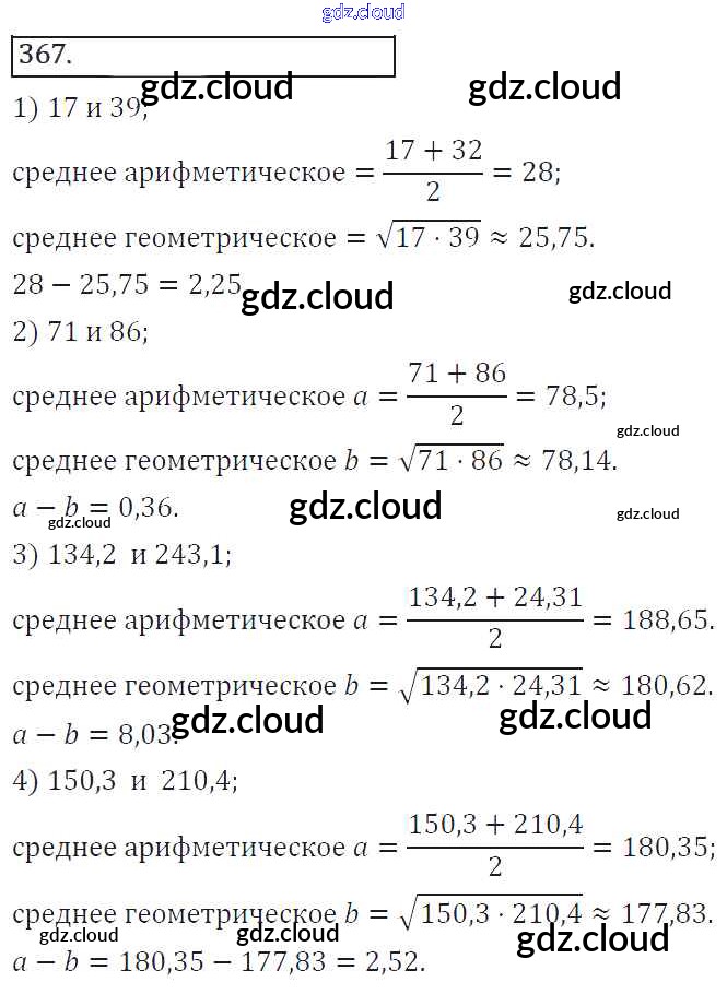 Ответ на задание 367 Учебник Алгебра за 8 (восьмой) класс Колягин, Ткачева, Федорова, Шабунин УМК 2013 ФГОС онлайн и без номера телефона.