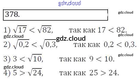 Ответ на задание 378 Учебник Алгебра за 8 (восьмой) класс Колягин, Ткачева, Федорова, Шабунин УМК 2013 ФГОС онлайн и без номера телефона.