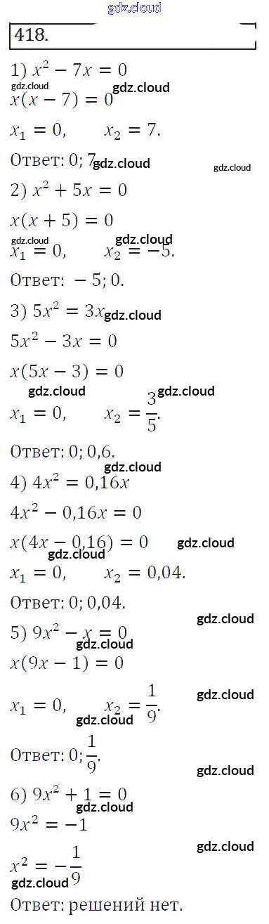 Ответ на задание 418 Учебник Алгебра за 8 (восьмой) класс Колягин, Ткачева, Федорова, Шабунин УМК 2013 ФГОС онлайн и без номера телефона.