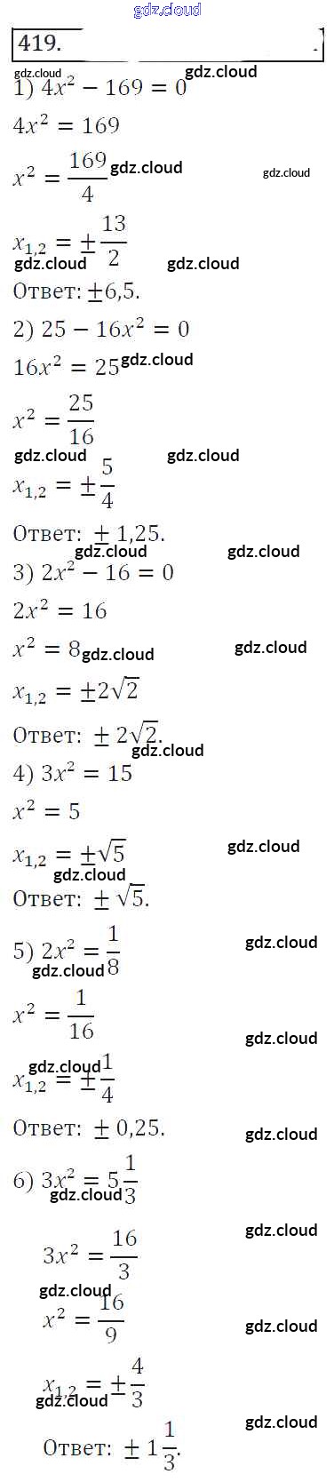 Ответ на задание 419 Учебник Алгебра за 8 (восьмой) класс Колягин, Ткачева, Федорова, Шабунин УМК 2013 ФГОС онлайн и без номера телефона.