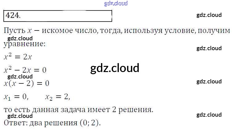 Ответ на задание 424 Учебник Алгебра за 8 (восьмой) класс Колягин, Ткачева, Федорова, Шабунин УМК 2013 ФГОС онлайн и без номера телефона.