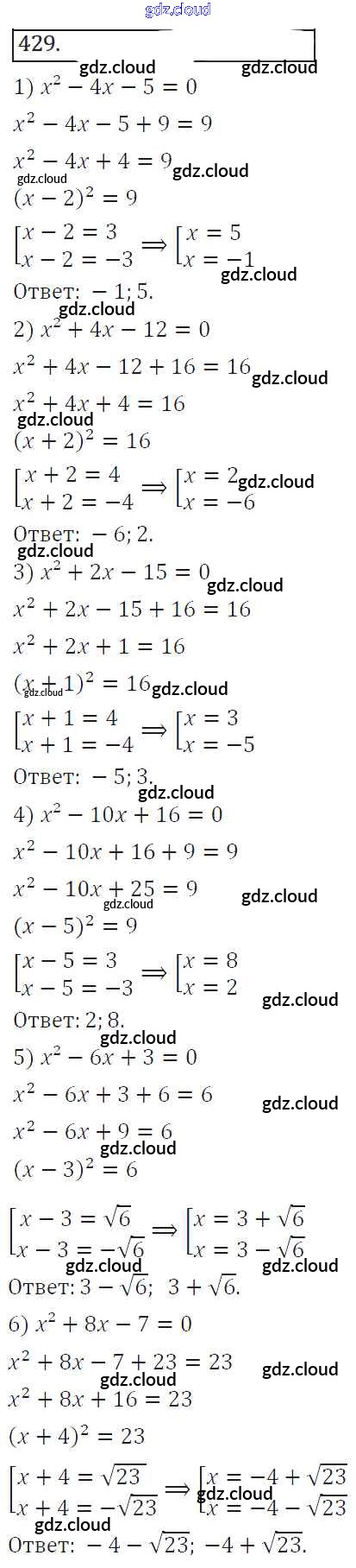 Ответ на задание 429 Учебник Алгебра за 8 (восьмой) класс Колягин, Ткачева, Федорова, Шабунин УМК 2013 ФГОС онлайн и без номера телефона.