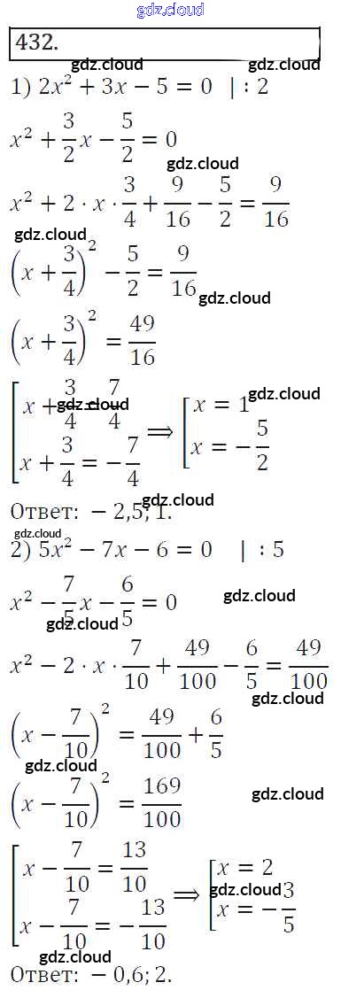 Ответ на задание 432 Учебник Алгебра за 8 (восьмой) класс Колягин, Ткачева, Федорова, Шабунин УМК 2013 ФГОС онлайн и без номера телефона.