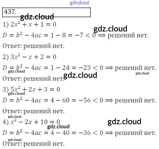Ответ на задание 437 Учебник Алгебра за 8 (восьмой) класс Колягин, Ткачева, Федорова, Шабунин УМК 2013 ФГОС онлайн и без номера телефона.