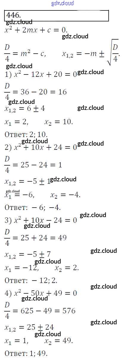 Ответ на задание 446 Учебник Алгебра за 8 (восьмой) класс Колягин, Ткачева, Федорова, Шабунин УМК 2013 ФГОС онлайн и без номера телефона.