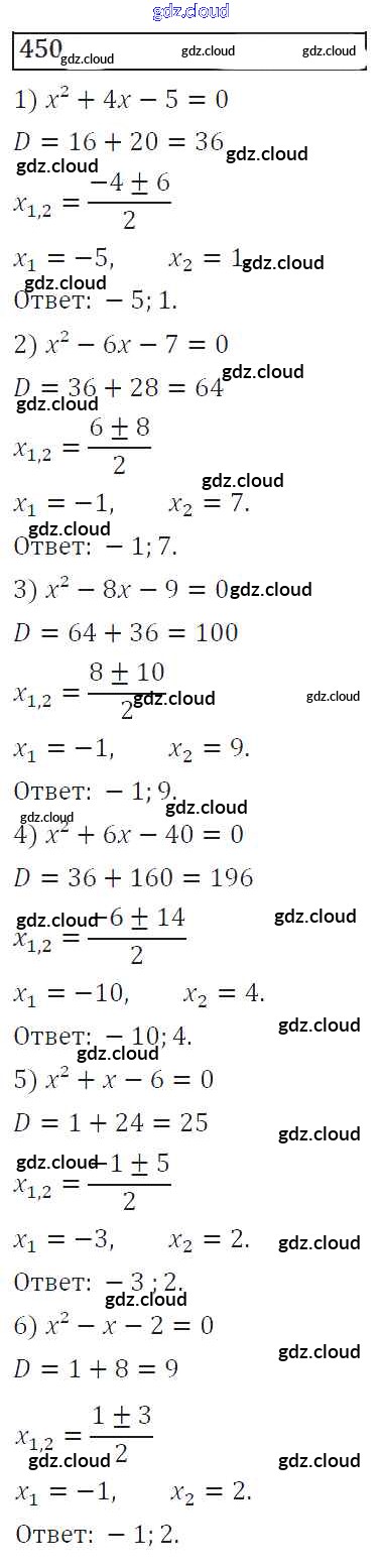 Ответ на задание 450 Учебник Алгебра за 8 (восьмой) класс Колягин, Ткачева, Федорова, Шабунин УМК 2013 ФГОС онлайн и без номера телефона.