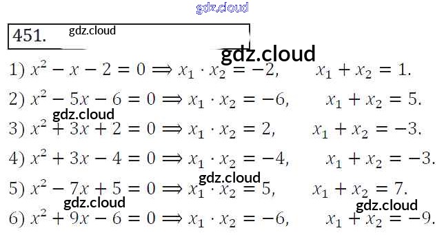 Ответ на задание 451 Учебник Алгебра за 8 (восьмой) класс Колягин, Ткачева, Федорова, Шабунин УМК 2013 ФГОС онлайн и без номера телефона.