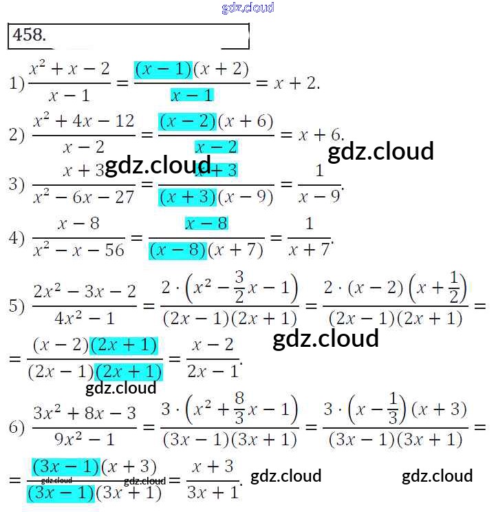 Ответ на задание 458 Учебник Алгебра за 8 (восьмой) класс Колягин, Ткачева, Федорова, Шабунин УМК 2013 ФГОС онлайн и без номера телефона.